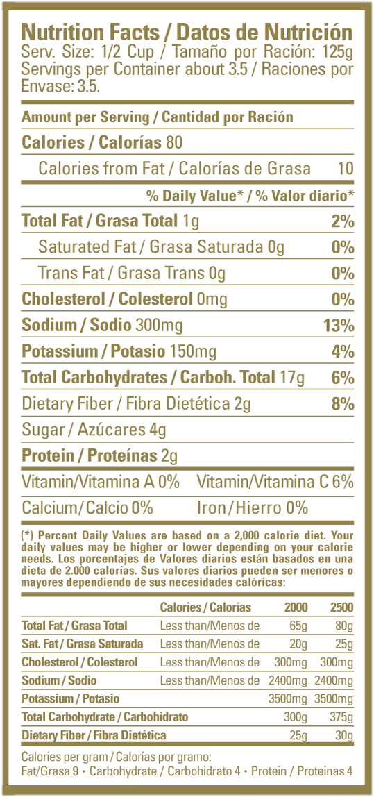 | Pack | 24 x 425 gr /15 oz |