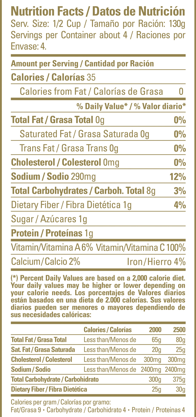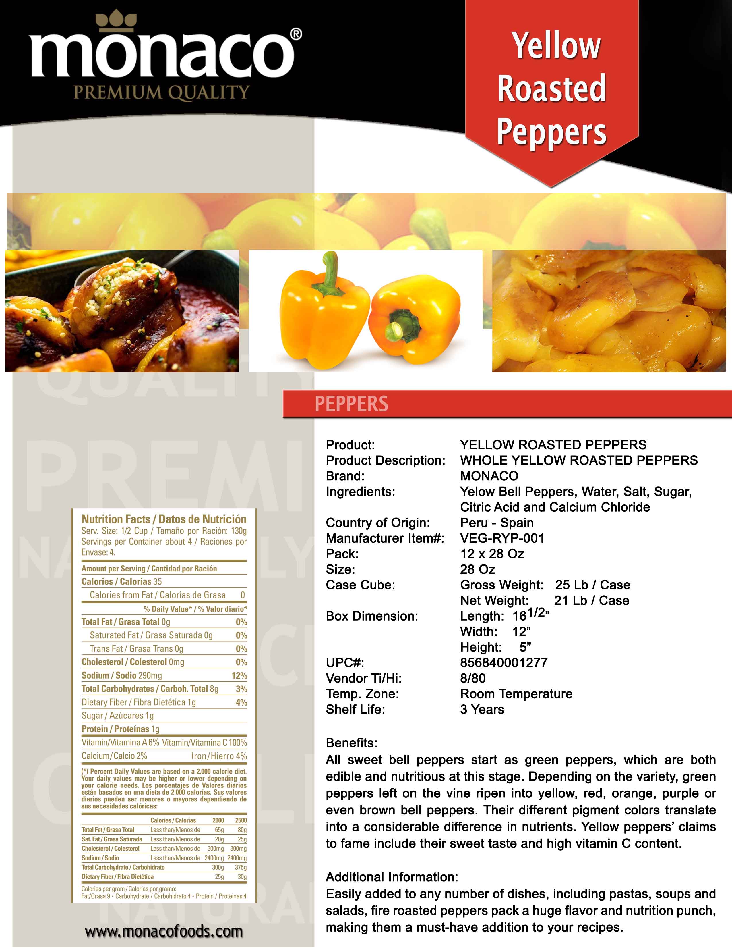 Yellow Bell Peppers, Water, Salt, Sugar, Citric Acid and Calcium Chloride